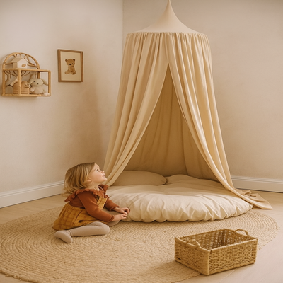 Pour les enfants plus grands, des modèles comme le CIEL DE LIT ENFANT | PROTECTEUR ou le CIEL DE LIT POUR ENFANT | ELÉGANT offrent un équilibre parfait entre espace personnel et décoration élégante.