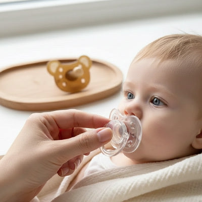 La sucette peut être proposée dès la naissance, une fois l'allaitement bien établi (généralement après 3-4 semaines) pour les bébés allaités. Pour les bébés au biberon, elle peut être introduite plus tôt. Nos sucettes sont disponibles en différentes tailles adaptées à l'âge de votre enfant, avec des indications claires sur l'emballage.